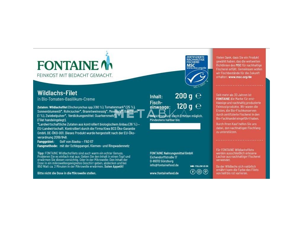 Zažijte opravdový lososový požitek s filetem z divokého lososa Fontaine v rajčatovo-bazalkové omáčce – jemně okořeněným, křehce vařeným a marinovaným ve středomořské bio zeleninové omáčce. Divoký losos pochází z udržitelného rybolovu v severovýchodním Pacifiku (FAO 67) a je pečlivě zpracován pro zachování přirozené chuti a nejvyšší kvality.